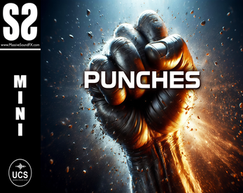 MINI PUNCHES - 60 files of punch sound effects, from several sparring sessions. From quiet taps and hits to thudding and cracking impacts. Mini Punches comes in at over 15 seconds, of real skin on skin body and head shots. Bring the power of bare knuckle to your next project. Recorded at 192kHz and 32bit, using microphones capable of recording ultrasonic frequencies. Mini Punches filenames are in the Universal Category System format with additional Metadata baked-in.
